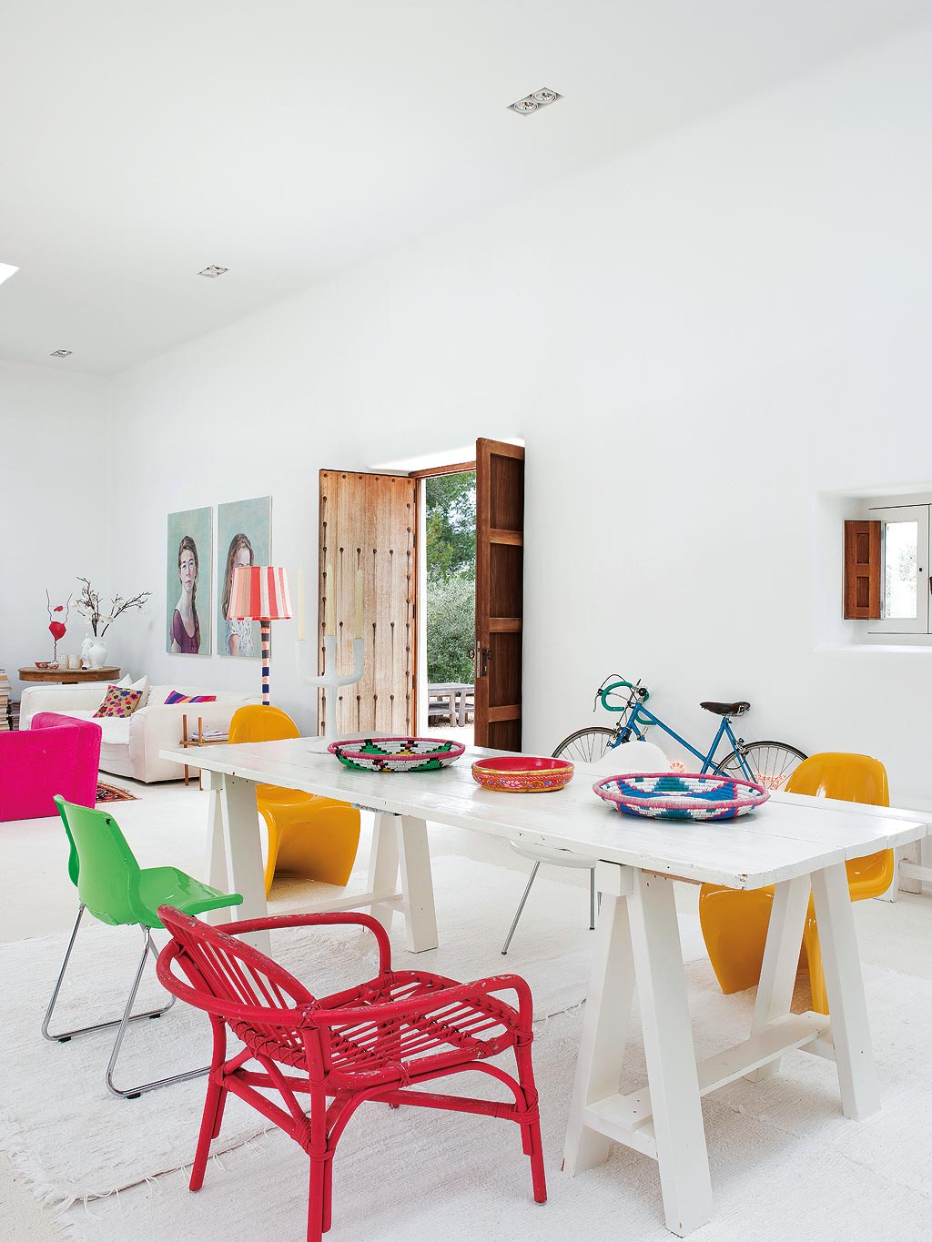 Η αρχιτεκτονική απλή, με λευκές καθαρές γραμμές, ενώ τα πολύχρωμα έπιπλα και αξεσουάρ δίνουν τον χαρακτήρα και την ατμόσφαιρα στον κατά τα άλλα ουδέτερο χώρο. Enjoy it!