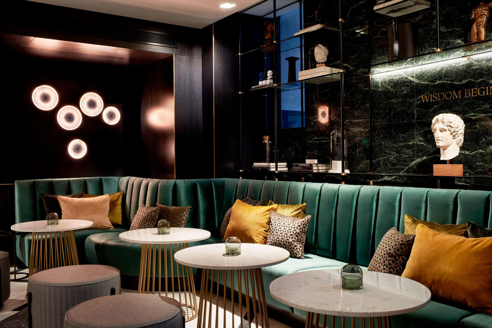 Κατά την άφιξή τους στο ξενοδοχείο και πριν ακόμα οδηγηθούν στη ρεσεψιόν, οι επισκέπτες ξαφνιάζονται ευχάριστα αντικρύζοντας το εντυπωσιακό Plato Bar & Lounge, που προσδίδει ένα μοναδικό στίγμα στο design του ξενοδοχείου. Το Plato Bar & Lounge διαθέτει μία λίστα με περίτεχνα cocktails, πολλά από τα οποία είναι εμπνευσμένα από την αρχαιοελληνική ιστορία και περιλαμβάνουν ελληνικά βότανα και μυρωδικά, ενώ πλούσιος είναι και ο κατάλογος με τις δεκάδες επιλογές Gin, με ετικέτες από όλο τον κόσμο.