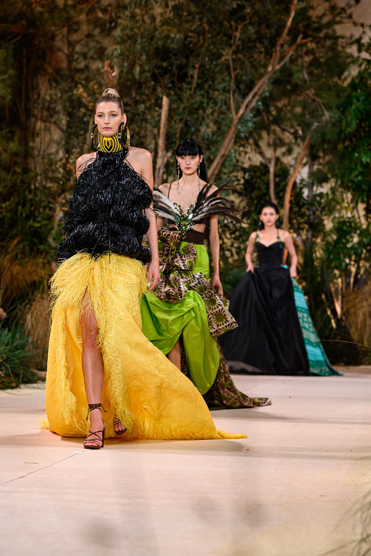 Εμπνευσμένη από την ήπειρο των μεγάλων αντιθέσεων και της μεγάλης ομορφιάς κι από τα ταξίδια της εκεί, η Σίλια Κριθαριώτη παρουσίασε την Τρίτη, 24 Ιανουαρίου στο Pavillon Cambon Capucines την Couture Συλλογή της για την Άνοιξη/Καλοκαίρι 2023 στη διάρκεια της Εβδομάδας Μόδας Υψηλής Ραπτικής. Όπως σημείωσε και η ίδια: «Κάθε ταξίδι ξεκινά από μέσα μας και δεν έχει να κάνει με τον προορισμό αλλά με την αφετηρία και την επιθυμία μας». Ο χώρος είχε μετατραπεί σε τροπικό δάσος για τις ανάγκες του σόου με πυκνή βλάστηση και μεγάλα δέντρα να ορίζουν το catwalk.