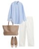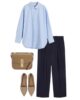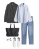 Με denim, το γαλάζιο πουκάμισο αποκτά πιο relaxed χαρακτήρα, χωρίς να γίνεται casual. Το μπλε με μπλε λειτουργεί σαν statement από μόνο του, ειδικά όταν οι γραμμές είναι αυστηρές και τα αξεσουάρ επιλεγμένα με φειδώ. Εδώ δεν μιλάμε για effortless look, αλλά για styling με πρόθεση. Το πουκάμισο φοριέται μέσα από το παντελόνι, τα μανίκια ίσως ελαφρώς χαλαρά, το αποτέλεσμα όμως παραμένει sharp.