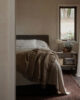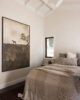 Στο υπνοδωμάτιο, η αισθητική γίνεται ακόμη πιο ήσυχη. Οι τόνοι παραμένουν γήινοι, τα υφάσματα φυσικά και η διακόσμηση περιορίζεται στα απολύτως απαραίτητα. Το κρεβάτι ντύνεται με λινά και βαμβακερά υλικά, δημιουργώντας ένα περιβάλλον ιδανικό για ξεκούραση.