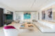 Το καθιστικό αποτελεί την καρδιά της βίλας. Ανοιχτό, φωτεινό και απόλυτα φιλόξενο, φιλοξενεί χαμηλούς καναπέδες σε neutral αποχρώσεις που ενισχύουν την αίσθηση χαλάρωσης. Η διακόσμηση παραμένει προσεγμένη χωρίς υπερβολές, ενώ τα έργα τέχνης λειτουργούν ως ήσυχες πινελιές προσωπικότητας.