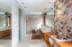 Τα μπάνια ακολουθούν την ίδια λογική γαλήνης. Φυσική πέτρα, ξύλο και απλές γραμμές συνθέτουν χώρους που θυμίζουν ιδιωτικό spa. Οι μεγάλες επιφάνειες και οι καθρέφτες ενισχύουν το φως, ενώ κάθε λεπτομέρεια συμβάλλει σε μια καθημερινή εμπειρία ευεξίας.