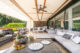 Ο εξωτερικός χώρος είναι αναμφίβολα ένα από τα πιο δυνατά στοιχεία της βίλας. Η πισίνα απλώνεται μπροστά στη θάλασσα, δημιουργώντας μια αίσθηση απόλυτης συνέχειας με τον ορίζοντα. Οι πέργκολες προσφέρουν φυσική σκιά, ενώ τα καθιστικά είναι ιδανικά για στιγμές χαλάρωσης από το πρωί έως το ηλιοβασίλεμα.