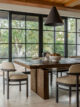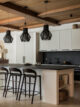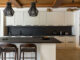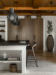 Η κουζίνα, σχεδιασμένη ως επαγγελματικός χώρος για τον chef ιδιοκτήτη, λειτουργεί και ως κοινωνικός πυρήνας. Τα custom έπιπλα της Dantone Kitchen, η μεγάλη νησίαδα με επιφάνεια γρανίτη και οι προσεγμένες αποθηκευτικές λύσεις συνδυάζουν λειτουργικότητα και αισθητική. Οι λεπτομέρειες, όπως οι ραβδωτές όψεις, το μαύρο backsplash, οι γραμμικές λαβές, προσθέτουν ρυθμό χωρίς υπερβολές.