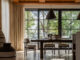 Στην τραπεζαρία, το μασίφ τραπέζι από φτελιά και οι καρέκλες Contempo του David Girelli πλαισιώνονται από custom κονσόλες που λειτουργούν ταυτόχρονα ως αποθηκευτικοί χώροι, διαχωριστικό και αρχιτεκτονικό στοιχείο.
